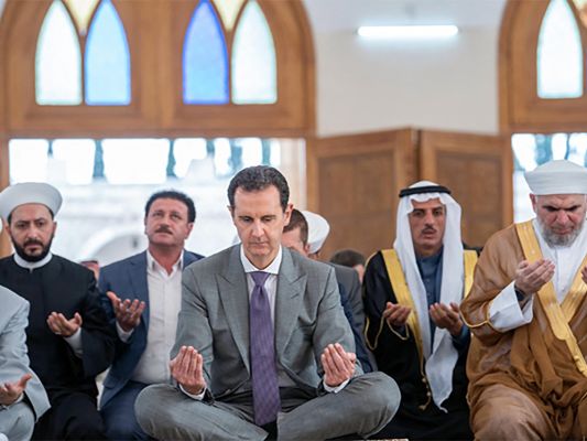 “Presiden Bashar al-Assad pada Sabtu melakukan salat Idul Adha di Masjid Sahabiy Abdallah bin Abbas di kota Aleppo,” kantor berita negara SANA melaporkan. Kantor berita itu juga merilis pesan Assad mengucapkan selamat Idul Adha kepada rakyat Suriah dan tentara di militer.