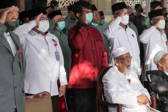 PONDOK Pesantren Al Mukmin Ngruki menggelar upacara bendera dalam rangka HUT ke-77 Republik Indonesia pada Rabu (17/8) kemarin. Upacara tersebut disebut sebagai yang pertama kali dilakukan secara besar-besaran di ponpes yang didirikan oleh Abu Bakar Ba’asyir pada 1972 itu.