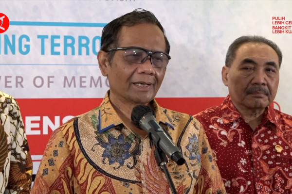 ANTARA – Menko Polhukam Mahfud MD menegaskan tindak terorisme merupakan musuh untuk semua manusia. Ia bahkan menyebutkan terorisme itu tidak memiliki agama dn pemerintah akan terus melakukan langkah-langkah tegas terhadap gerakan terorisme. Hal tersebut disampaikan Mahfud saat memperingati Hari Internasional untuk Peringatan dan Penghormatan bagi Korban Terorisme, yang diadakan di Jakarta, Minggu (21/8). (Erlangga Bregas Prakoso/Soni Namura/Rinto A Navis)