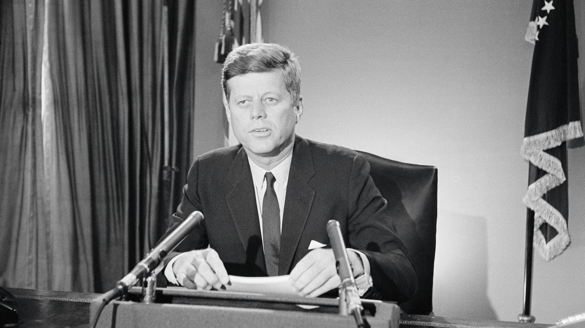 Presiden John F. Kennedy di Gedung Putih, tepat sebelum berpidato di televisi dan radio. (Getty Images)